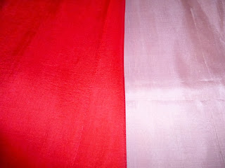Fabric: Dark purple silk that was labeled as dupioni but is really more like taffeta with a few little slubs, thick light blue linen, bright blue silk that is similar in texture to the purple, but slightly thinner.
